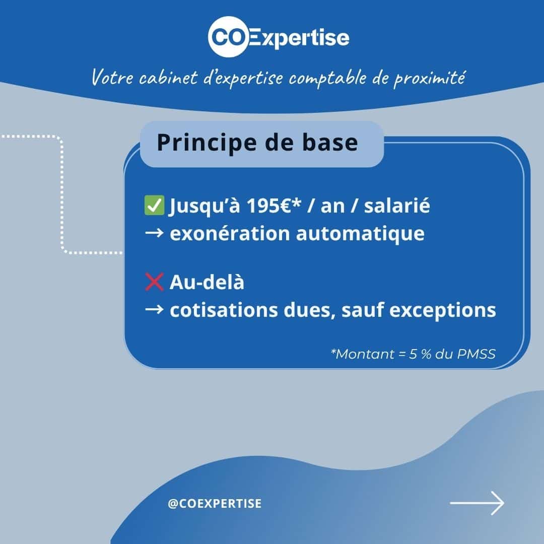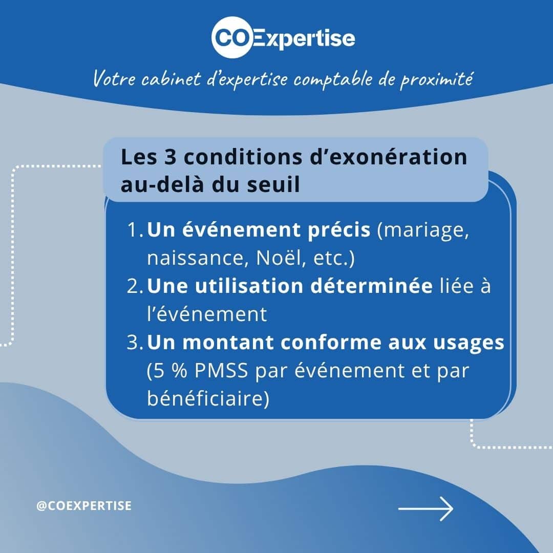 Attention : ce seuil n’est pas une franchise. Si le seuil est dépassé, l’employeur soumet l’intégralité du montant aux cotisations et contributions sociales (et non seulement la partie qui dépasse).